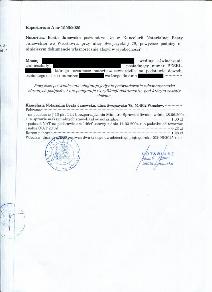 Podpis: Maciej Data: 29 kwietnia 2025